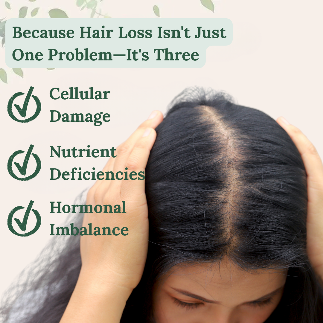 The truth? Hair loss is driven by oxidative stress, hormonal imbalance, and nutrient deficiencies—often all at once.